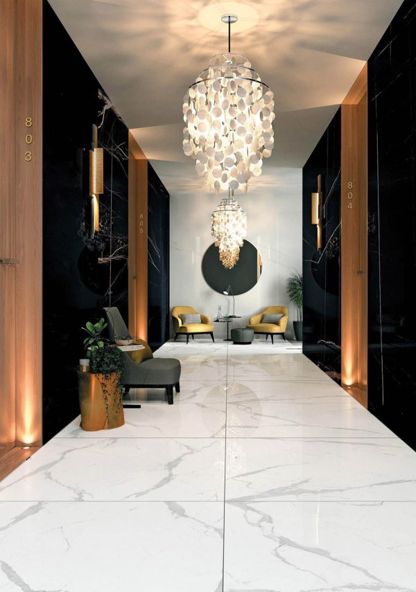 Every slab reflects light beautifully, expanding spaces with a serene and refined presence.