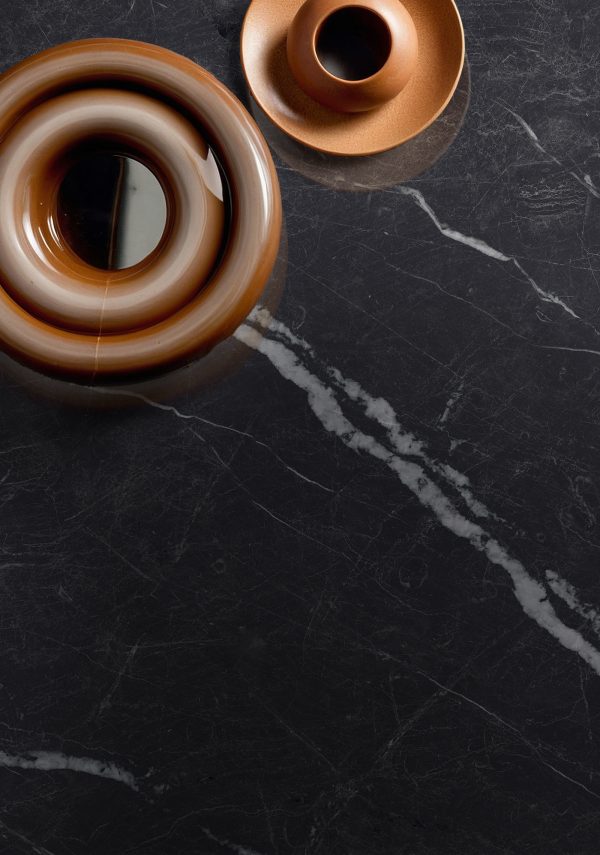 Perfect for dining areas, luxury lounges, statement walls, and executive spaces. MAGNIFICO blends profound dark tones with delicate white veining, pairing seamlessly with warm lighting, natural textures, and metallic details—creating an architectural surface that radiates elegance, depth, and contemporary strength.