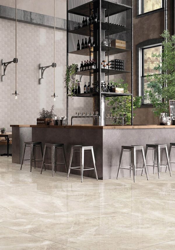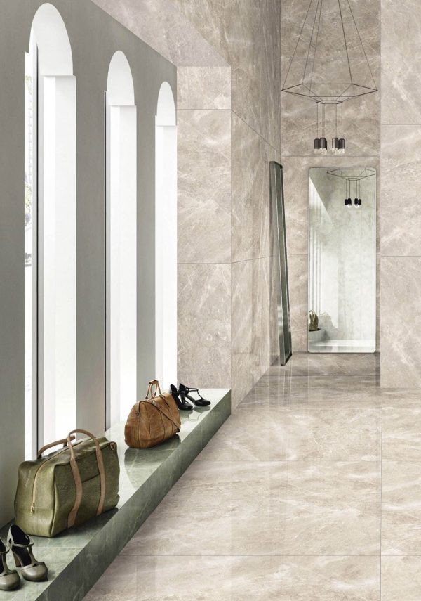 Its warm neutral palette harmonizes effortlessly with wood, concrete, or metallic elements, allowing architects and designers to create compositions of light, warmth, and sophistication.